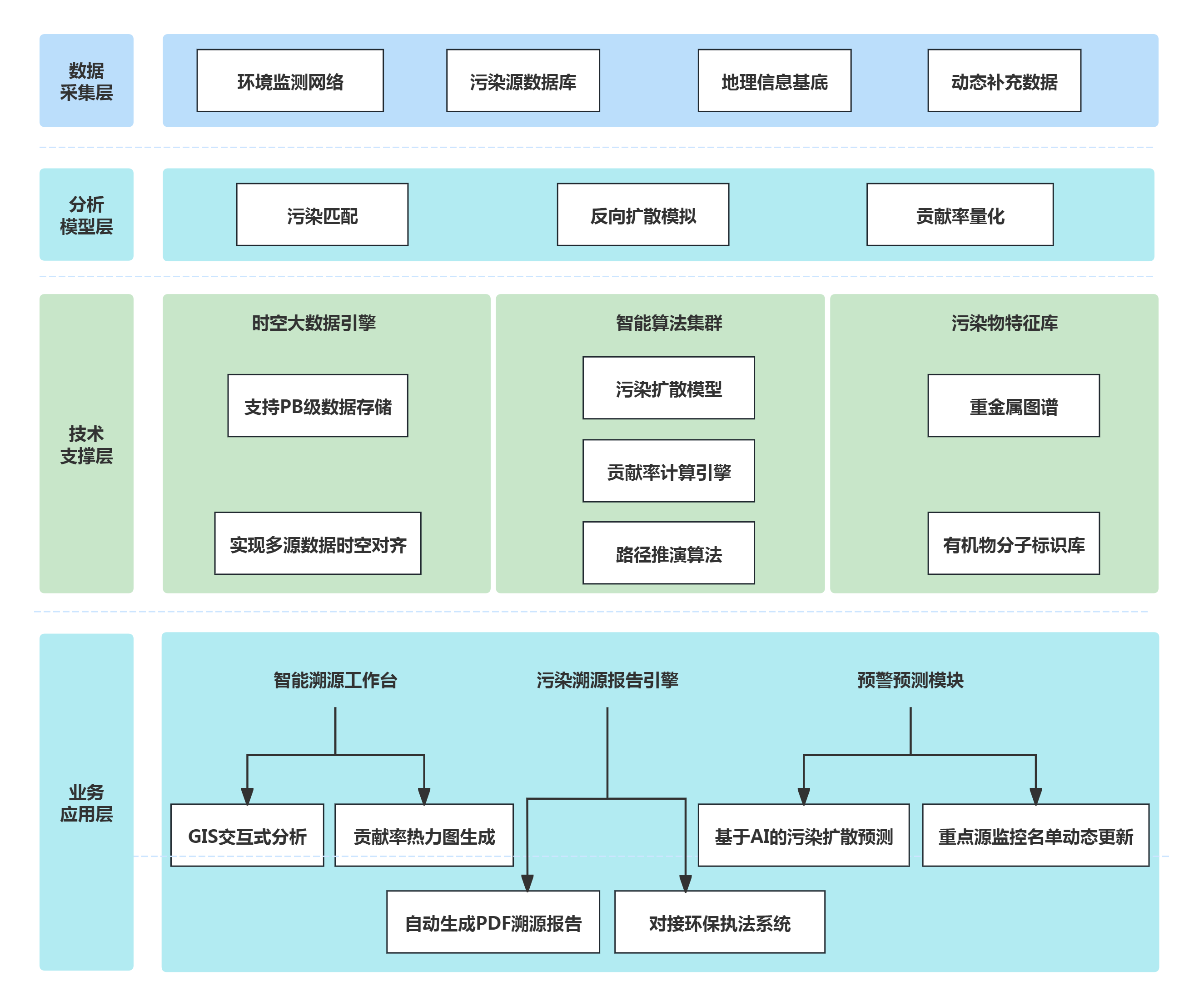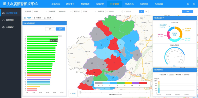 平台依托GIS、数据挖掘和关联建模等技术,整合水环境、水资源、污染源及水生态等多源数据构建了"水生态管理数据库与溯源系统",通过数据关联分析实现污染源的精准追溯,助力相关部门高效锁定污染原因。