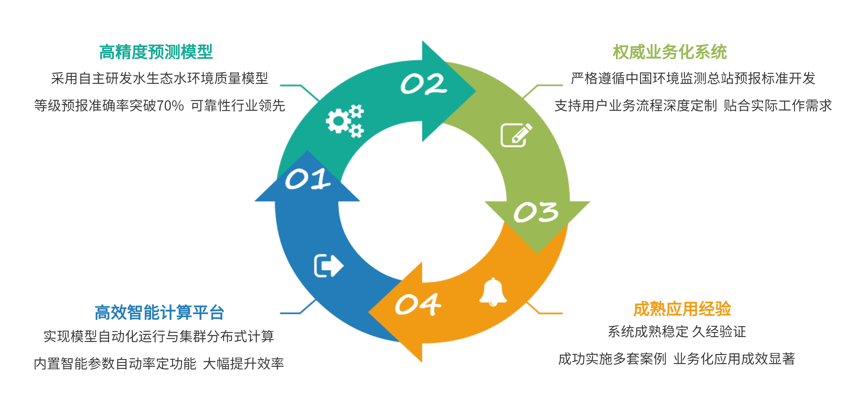 项目案例: 长江流域水生态监测业务平台、重庆水质预报预测系统、甘肃省水环境预报预警、江苏省殷村港流域水环境动态监控平台等。