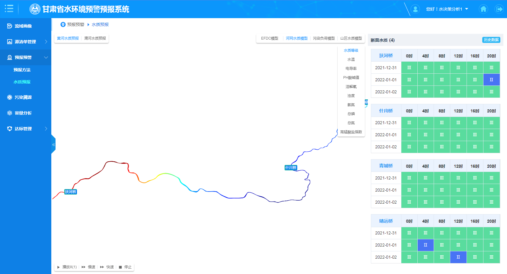 水质预警预报服务以部署与北京、上海、重庆、河南、河北、湖南、内蒙古、浙江、江苏、海南、甘肃、广西、新疆、广东、四川等多个地方信息化建设平台并开展业务化平台。